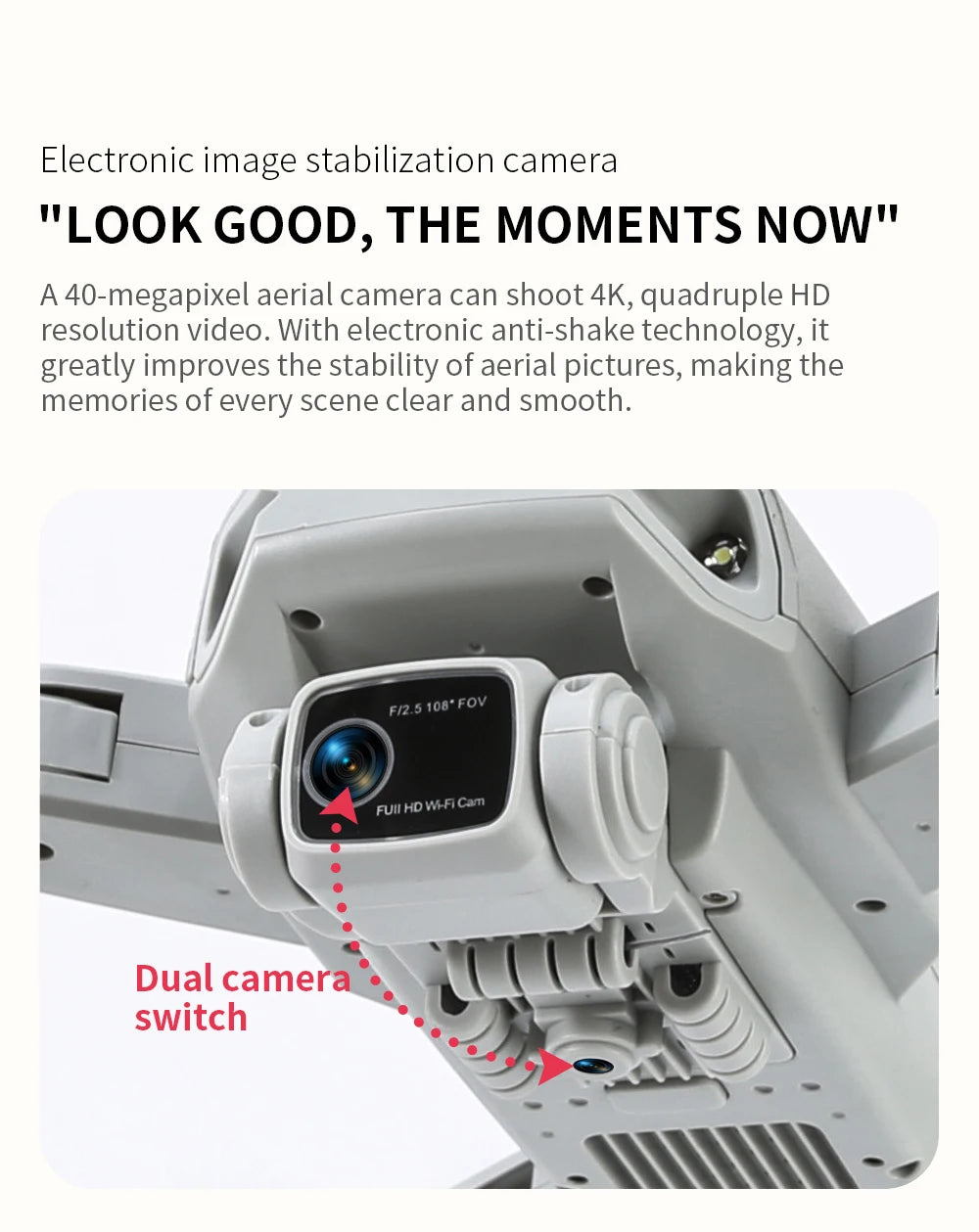 Designed for aerial photography enthusiasts and adventure seekers, this drone features a powerful brushless motor system, dual HD cameras and smart GPS-assisted flight modes. Its foldable structure allows for easy transport, while the strong anti-wind performance ensures stable flights outdoors. With intuitive app control and FPV transmission, you can see the world in real time from the sky and capture breathtaking photos and videos effortlessly.