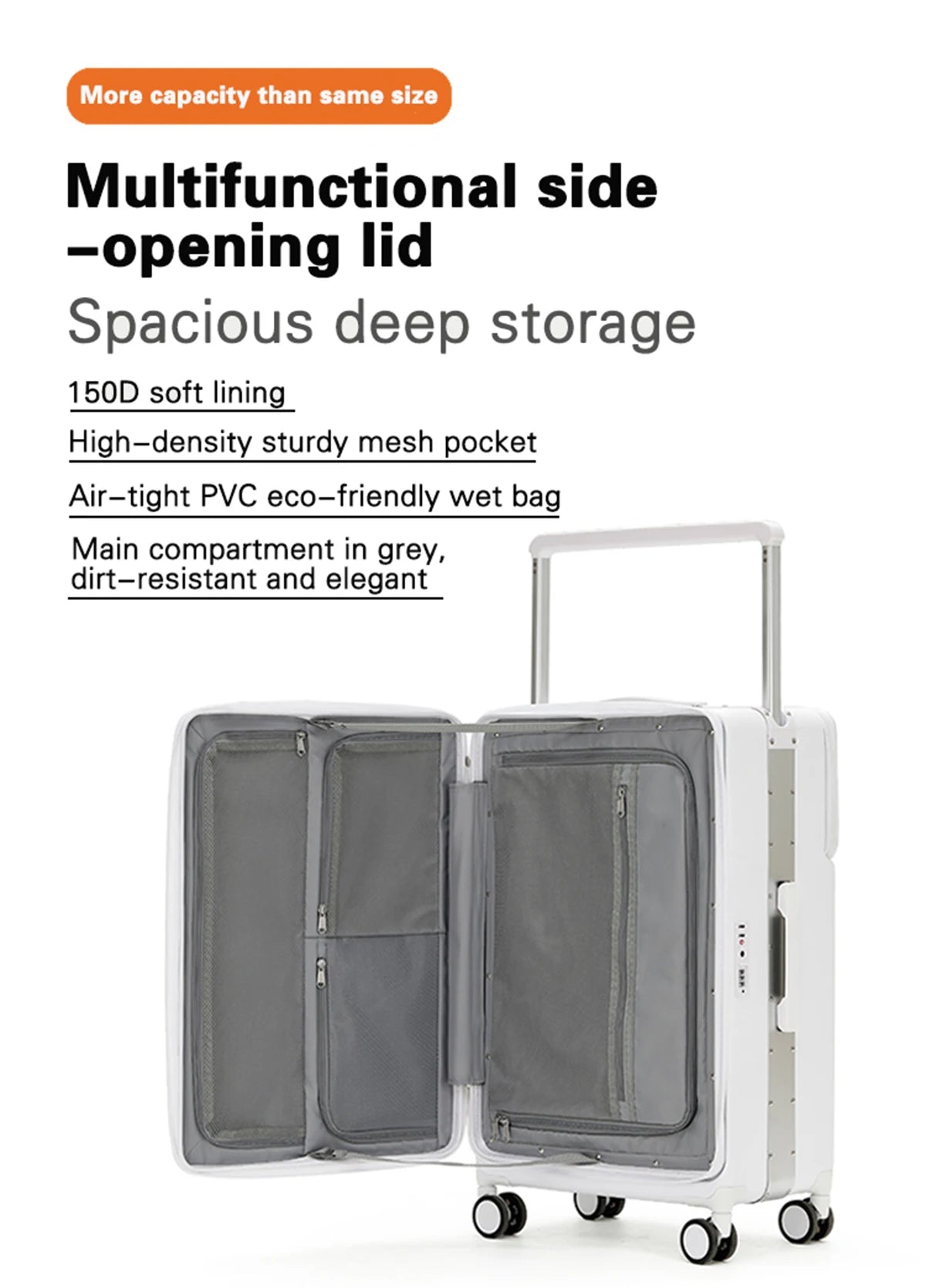 Its whisper-quiet spinner wheels glide smoothly in any direction, creating a seamless, weightless travel experience. The robust exterior offers superior impact resistance while remaining incredibly lightweight, making it perfect for both carry-on and checked baggage. Secure, durable and beautifully engineered—this suitcase isn’t just luggage, it’s your dependable companion for every adventure.