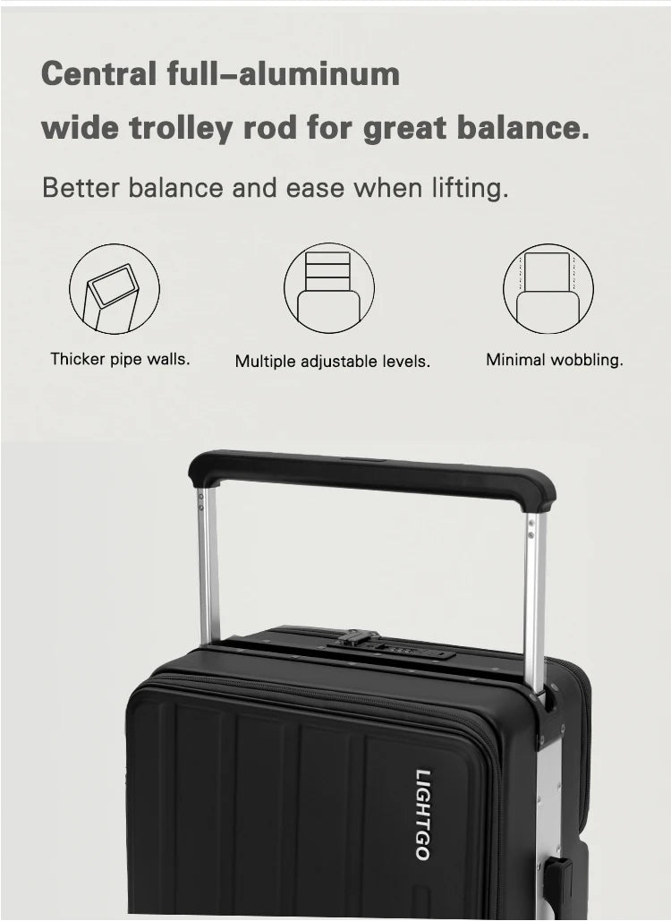 Experience a new standard of travel with the Pro Carry On Luggage 20/26/28 Inch, purposefully crafted for travellers who demand efficiency, elegance and performance in every journey. Designed with a dual-opening system for quick access, a dedicated laptop compartment for seamless business travel and a USB-C charging port to keep you powered on the move, this suitcase is built to match your lifestyle.