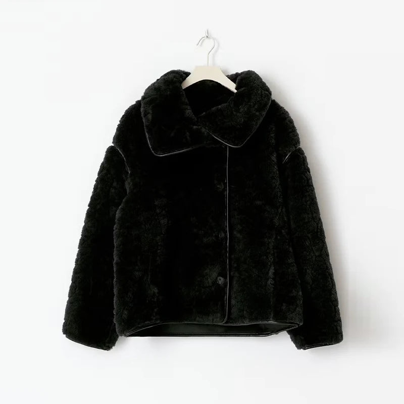 1 × Winter Lamb Fleece Solid Women Jacket